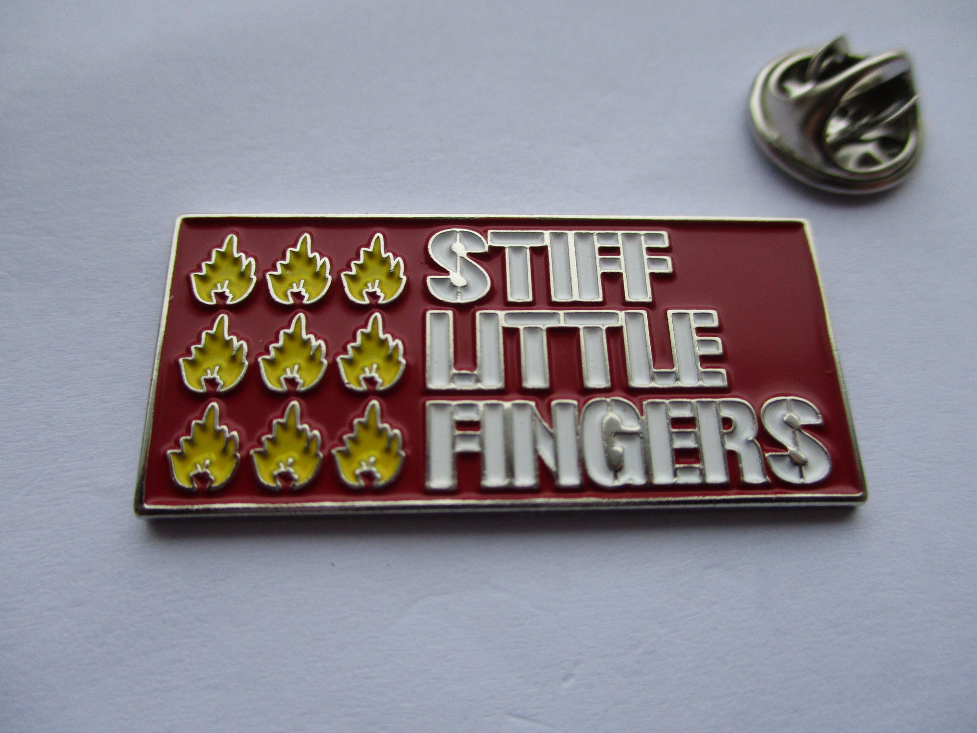 STIFF LITTLE FINGERS red PUNK METAL BADGE very few